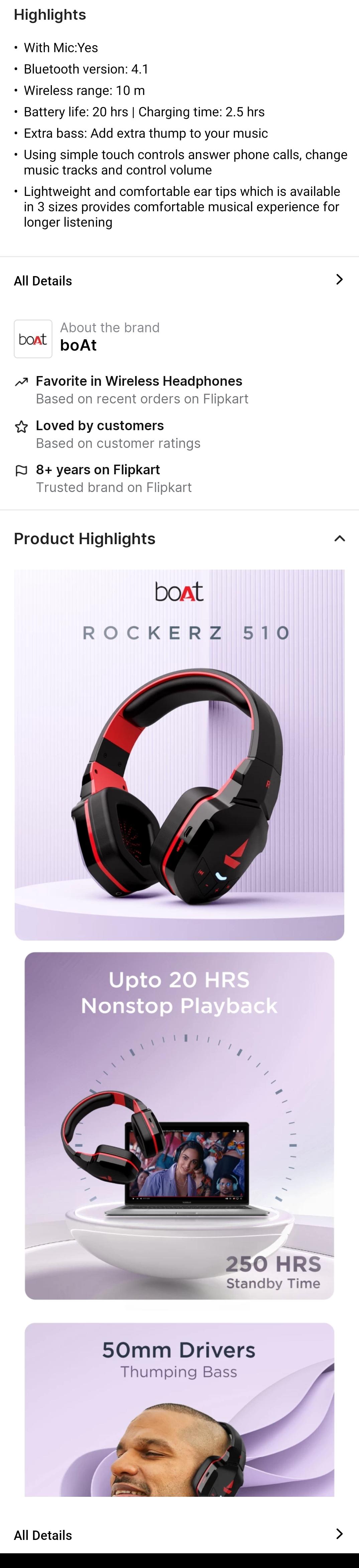 boAt Rockerz 510 Super Extra Bass Bluetooth Headset (Raging Red, On The Ear)