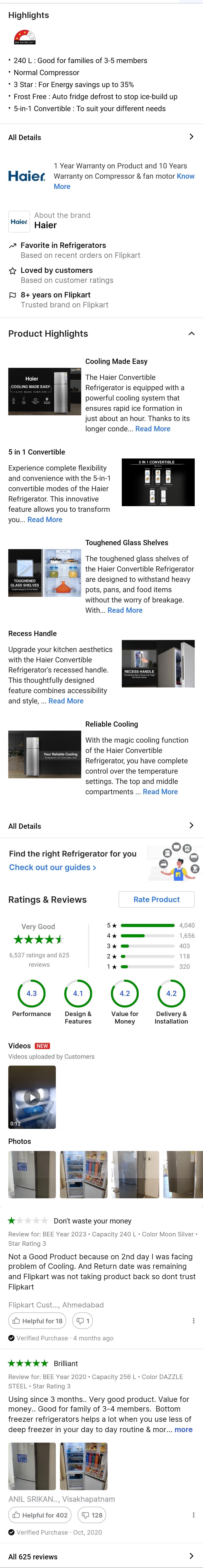 Haier 240 L Frost Double Door 3 Star Convertible Refrigerator (Moon Silver,HEF-253GS-P)